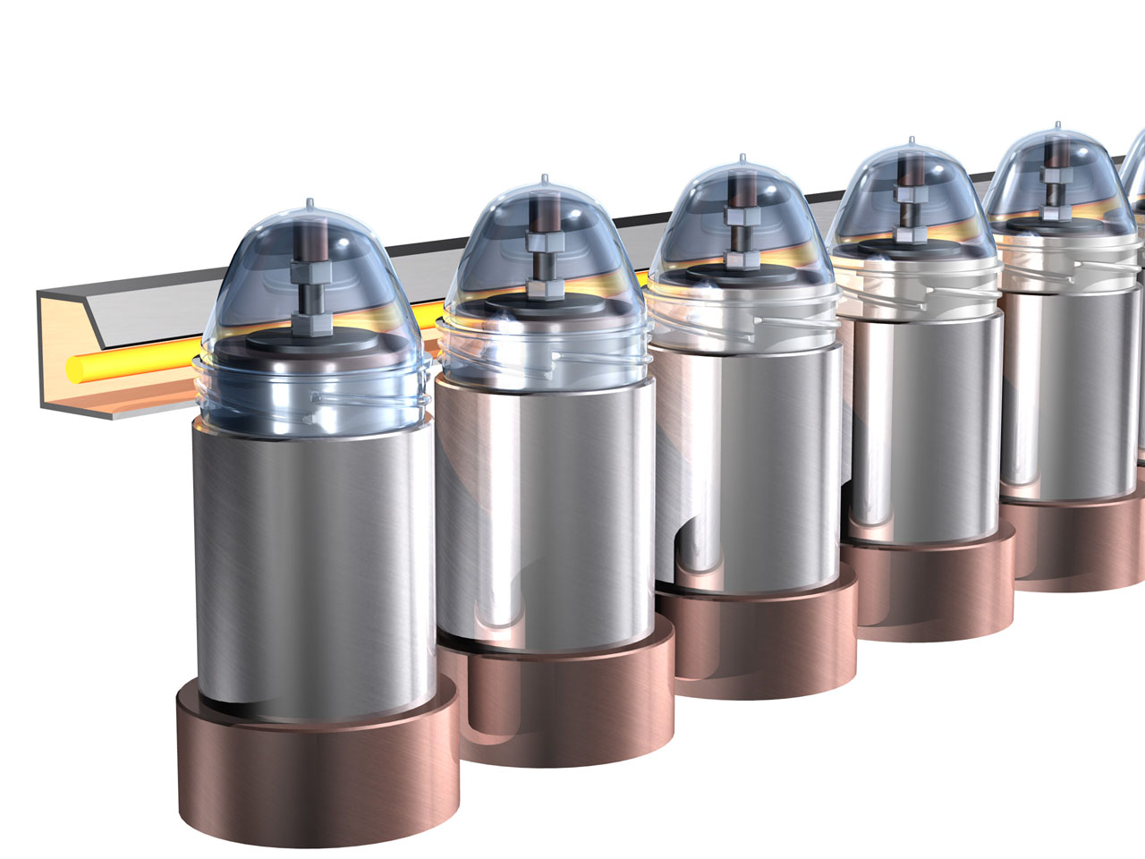 HSB Serisi makine kullanılarak, preform tekrar ısıtılır ve gerdirmeli bir şekilde şişirilir. HSB prosesi açıklamaları için sonraki 3 adıma bakınız.