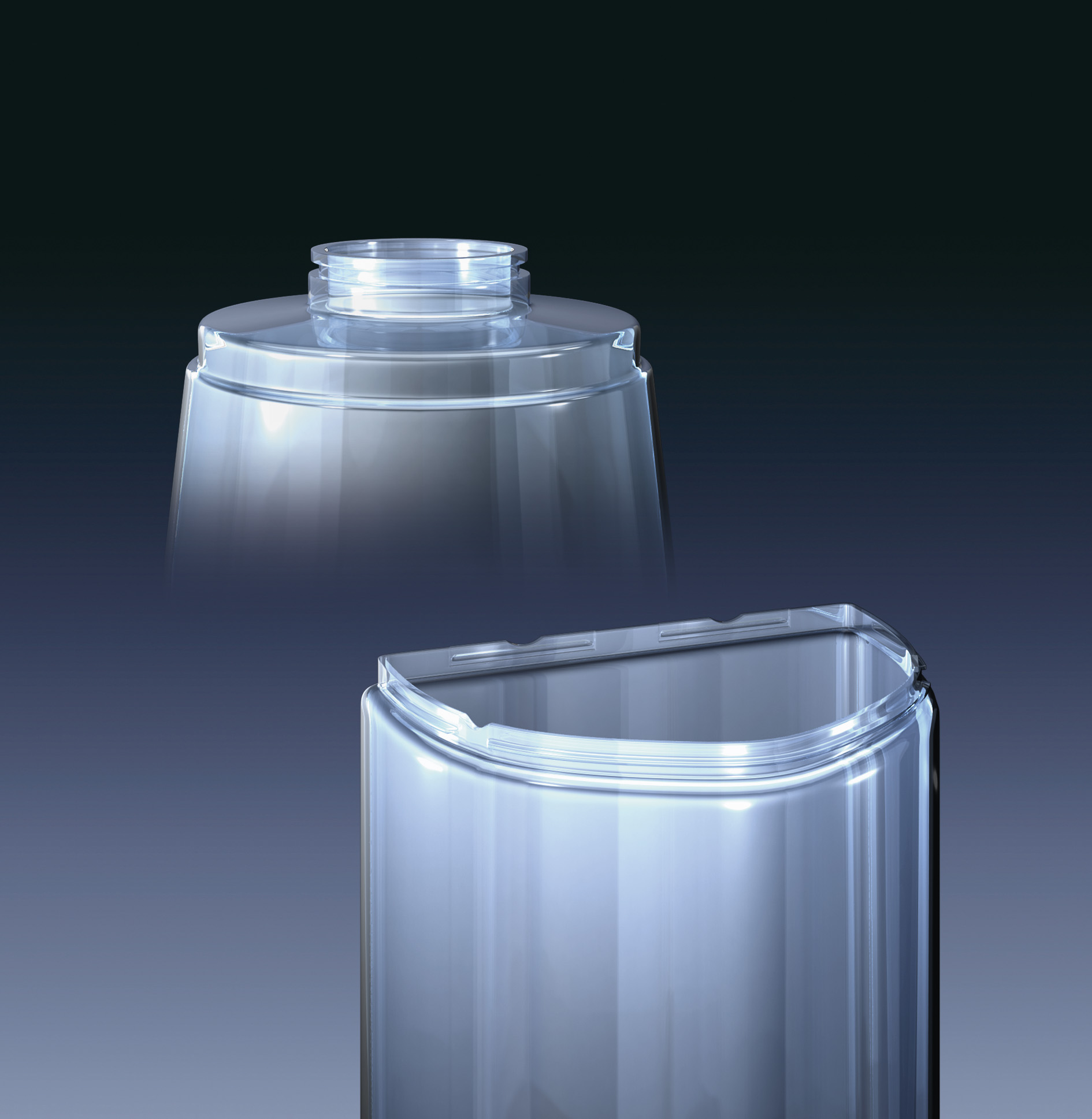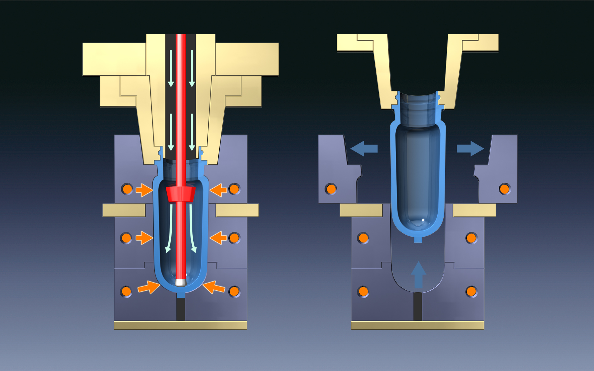 Preform üretimi esnasında şekil değiştiren özel enjeksiyon gözleri sayesinde 10mm ve üzeri kalınlığa sahip ambalaj tabanları üretilebilirken dış görünüş berraklığından da hiç bir taviz verilmemektedir. Böylelikle PET ham maddesinden üretilen son ürünün görüntüsünü camdan ayırt etmek neredeyse imkansız hale gelmiştir. Bu tekniği yüksek et kalınlığına sagip ambalaj üretebilen ASB Serisi makinelerde kullanarak yüksek kaliteli kozmetik ambalajları üretebilirsiniz.