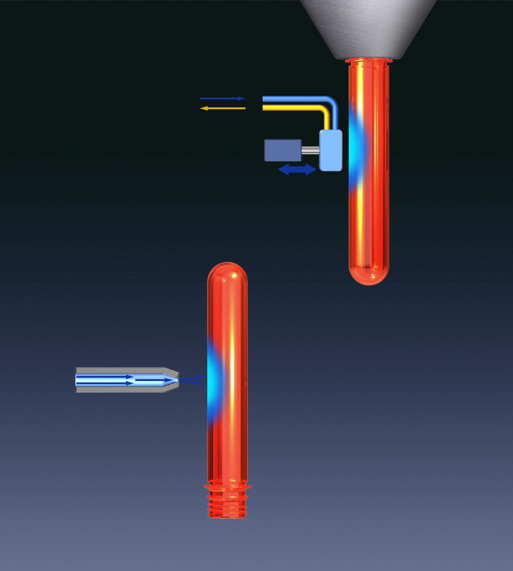 Bunun için de preformlar oval maça ve göz kullanılarak üretilir. Ardından, preform sıcaklığı yine oval şartlandırma maçalarıyla (ASB Serisi) veya bölgesel ısıtma yöntemleriyle (PF Serisi) ayarlanır. Sonuç olarak, mükemmel et dağılımına sahip yüksek kaliteli ambalajlar elde edilir.