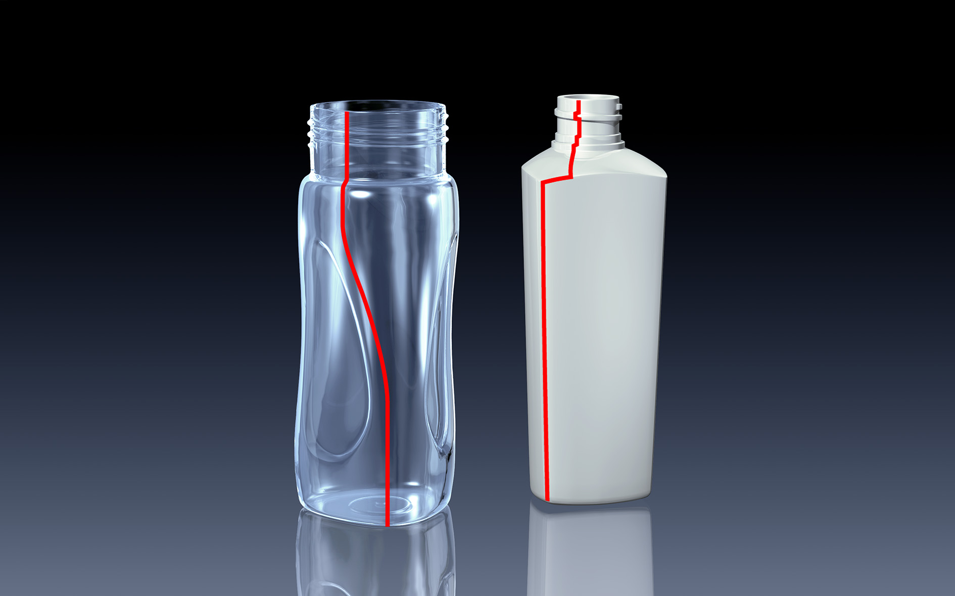 Kaliteli kalıp üretimimiz sayesinde kalıp ayrım çizgileri neredeyse görünmez. Bu imkanla, oval şişe üretiminde kalıp açma çizgisini ön / arka yüzeye getirerek üretim kapasitesini %80’e kadar artırmak mümkün olabilmektedir.